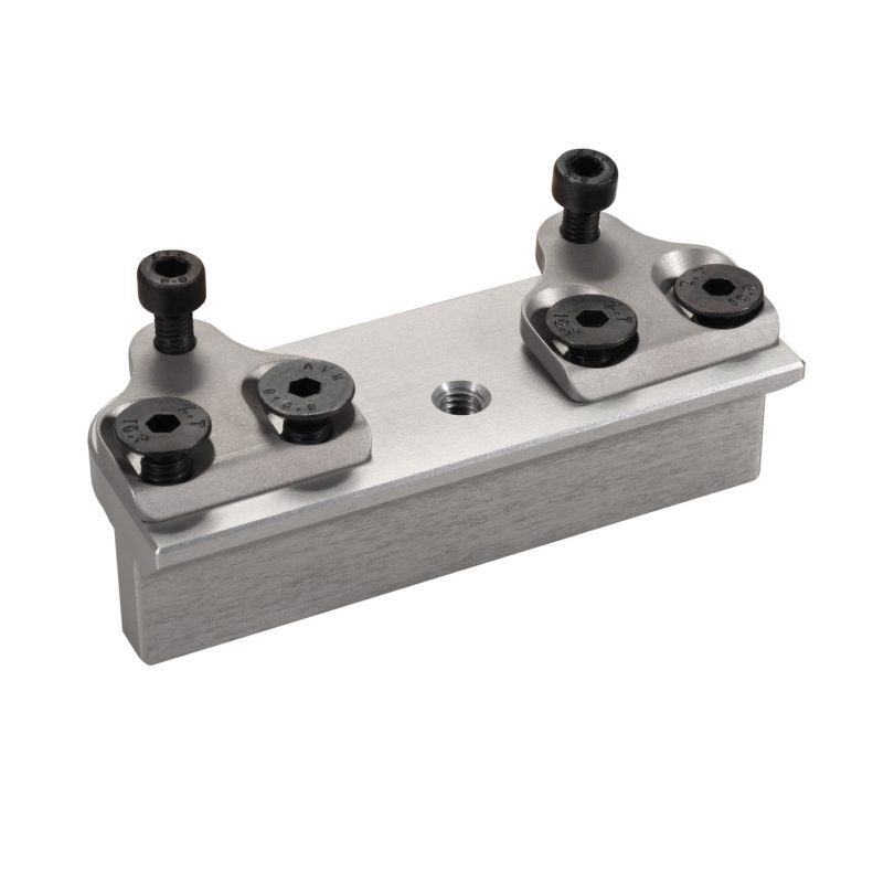 Adapter for clamping in 90° position. The main body and clamps are made from Ergal 7075 T651.
