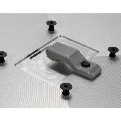 Base plate made for use with KMFS sharpening systems. The plate is made from solid aluminium ENAW6082, clamp is made from Ergal 7075 T651. Surface finish is natural anodisation.