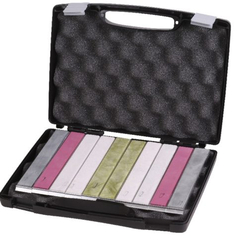 Kufřík obsahující komponenty pro dokončení ostří po diamantech grit 1000. Dokončení …