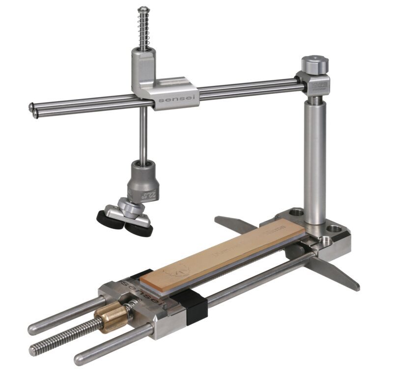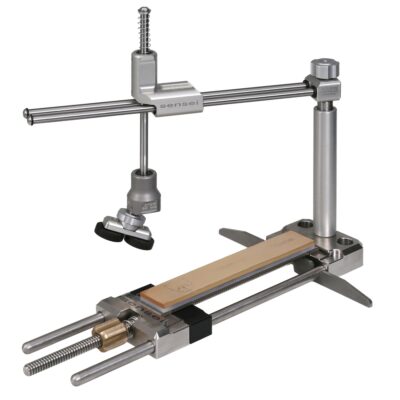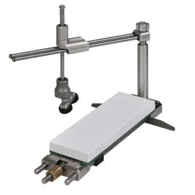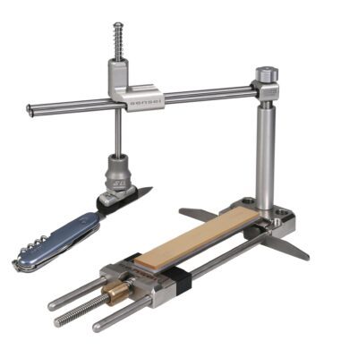 Tento brusný systém využívá naší patentovanou reverzní kinematiku a díky tomu drží stejný úhel na celém břitu broušené čepele.