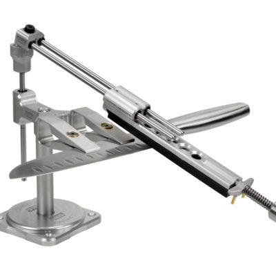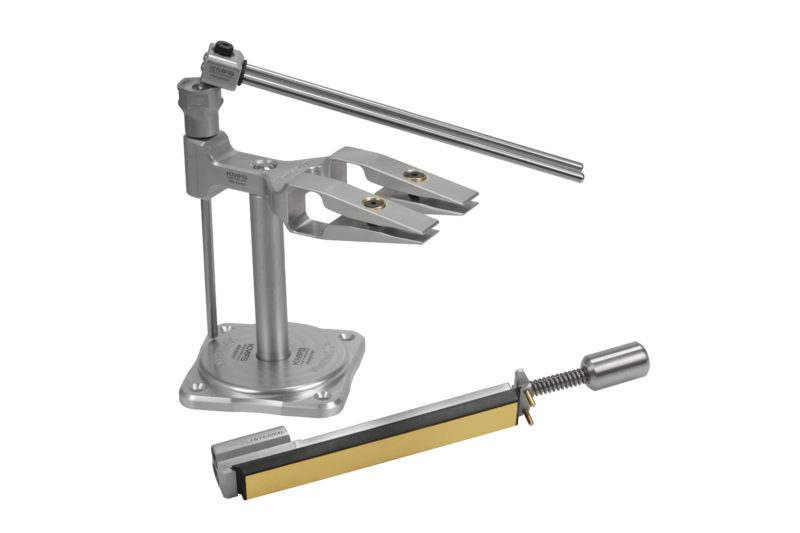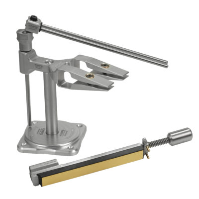 Díky Integrální klemě (šasi) kompletně frézované z bloku materiálu Ergal 7075 T651 je dosaženo dokonale přesné upínací orientace nože, maximálně pevné a snadné upnutí. To umožňuje zdvojená upínací svěrka vybavená kulovými bronzovými pouzdry upínacích šroubů, které eliminují nežádoucí síly při upínání a umožňují perfektní adaptaci na čepel nože. Není nutné při upnutí nože čepel upínat do obou čelistí, i pouhá jedna čelist poskytuje dostatečné upnutí pro broušení.