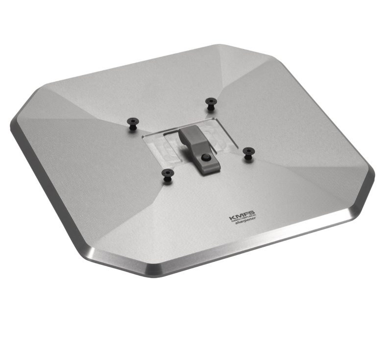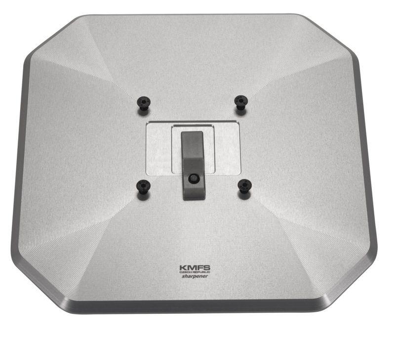 Základová deska pro upnutí brusných sad KMFS. Deska je vyrobena z bloku duralové slitiny ENAW6082 a upínka je vyrobena z bloku duralové slitiny Ergal 7075 T651. Povrchová úprava je přírodní elox.